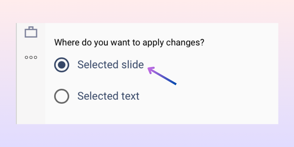 Choose Where You Want to Apply Changes “Selected slides or Selected Text”